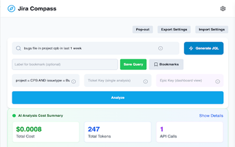 Jira Compass adalah ekstensi Chrome yang mengubah cara tim rekayasa menganalisis dan memahami proyek Jira. Dengan kekuatan analitik berbasis AI, alat ini menyediakan wawasan yang dapat diambil tindakan dari data tiket yang tidak terstruktur. Fitur utama termasuk analisis akar penyebab otomatis, penilaian dampak cerdas, dan dasbor kesehatan proyek interaktif. Alat ini dirancang untuk membantu manajer proyek dan tim rekayasa mengidentifikasi masalah, memahami dampak bisnis dari setiap tiket, serta memprioritaskan perbaikan berdasarkan pengaruh nyata terhadap pengguna.